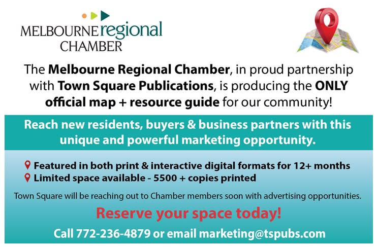 As a reminder, the Melbourne Regional Chamber is partnering with Town Square Publications to produce an official map and resource guide for our community. This publication will serve as a valuable resource for both visitors and residents, and it will be distributed through the Chamber as well as made available online.