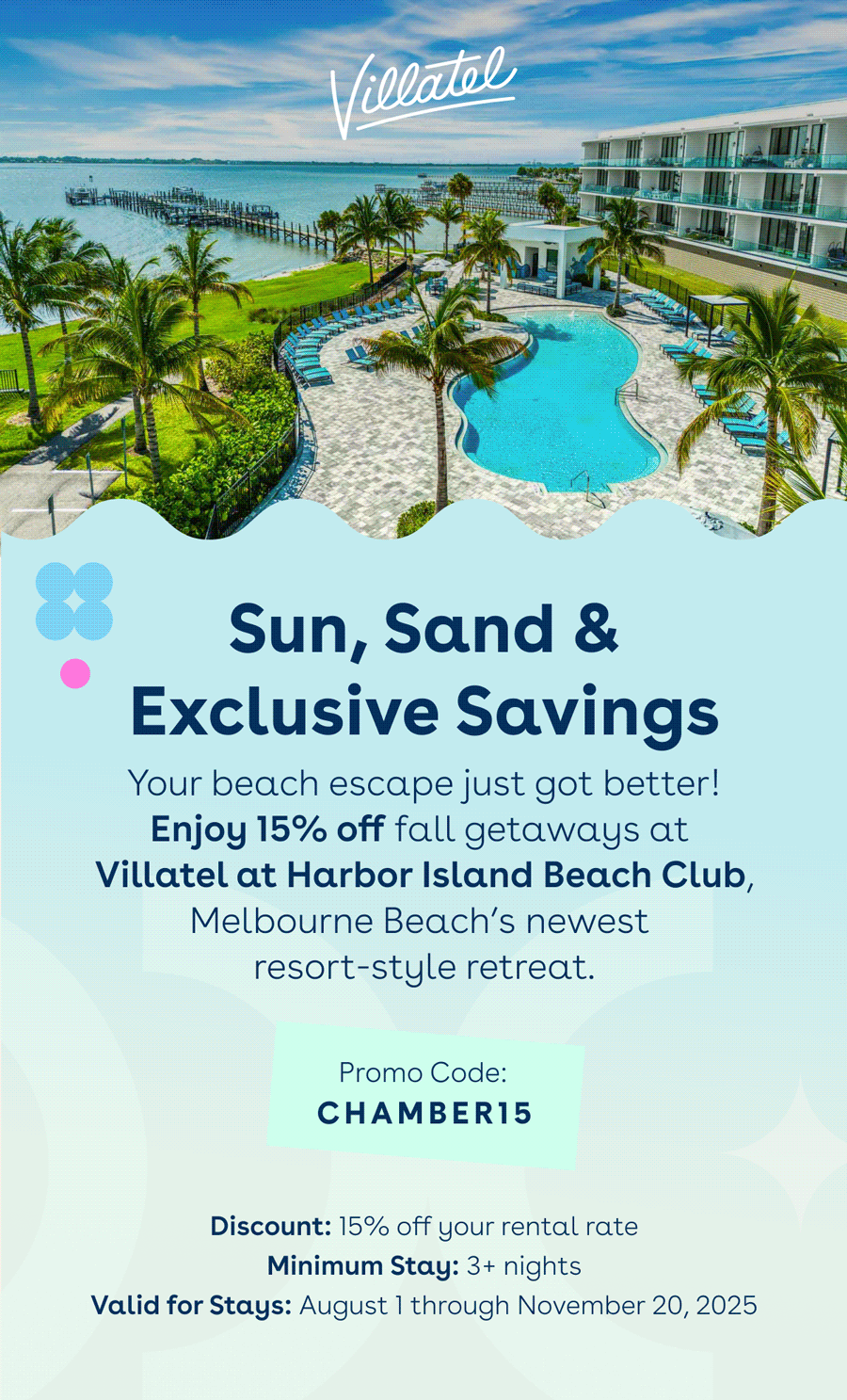 Villatel is offering Melbourne Chamber partners 15% off your next stay at Villatel at Harbor Island Beach Club!
