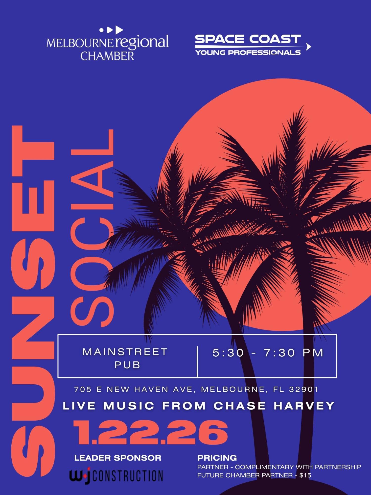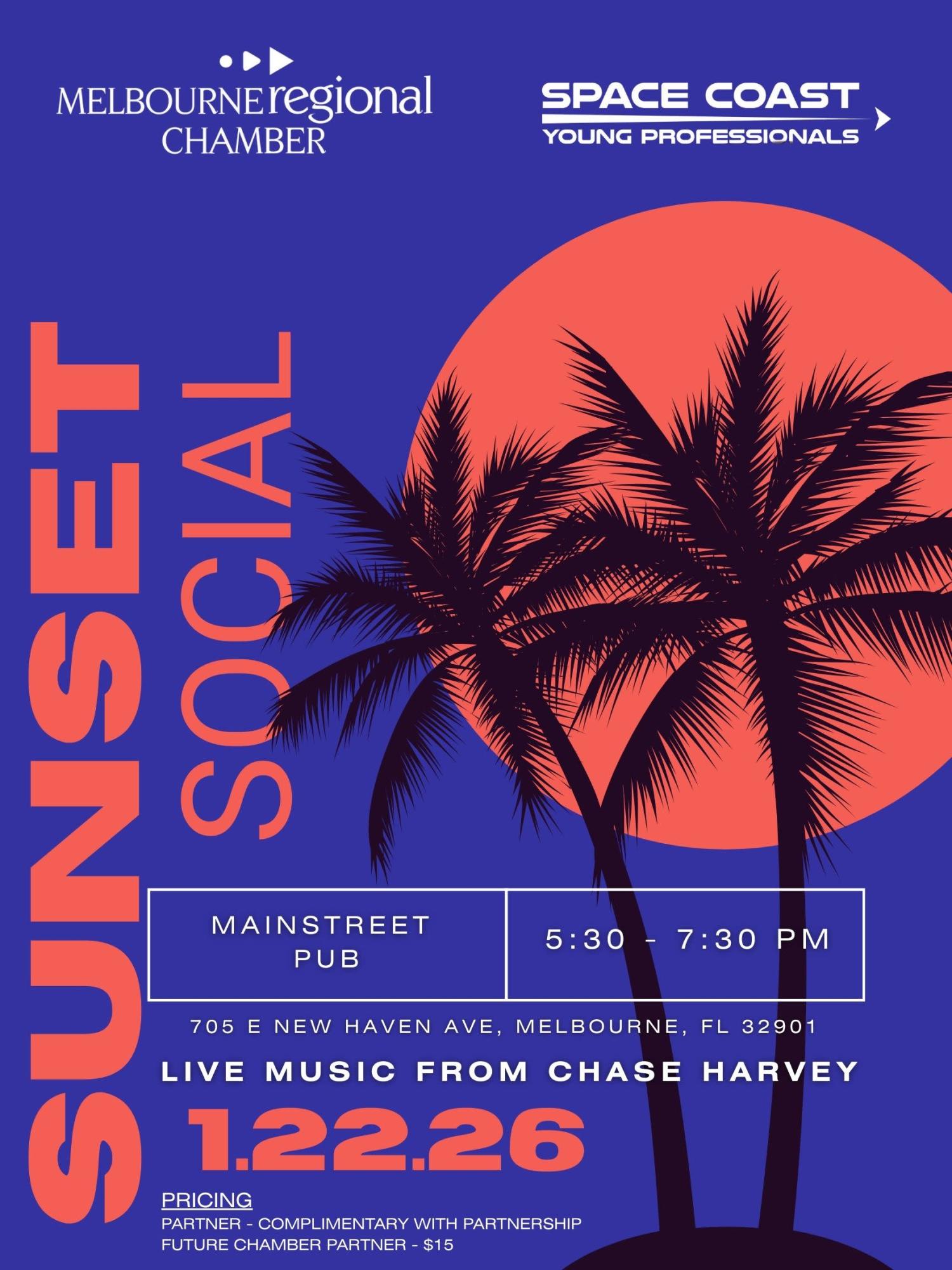 Join us for a relaxed and vibrant evening as the Space Coast Young Professionals Council hosts our Sunset Social at Mainstreet Pub! Connect with fellow young professionals, expand your network, and unwind in the heart of Downtown Melbourne.