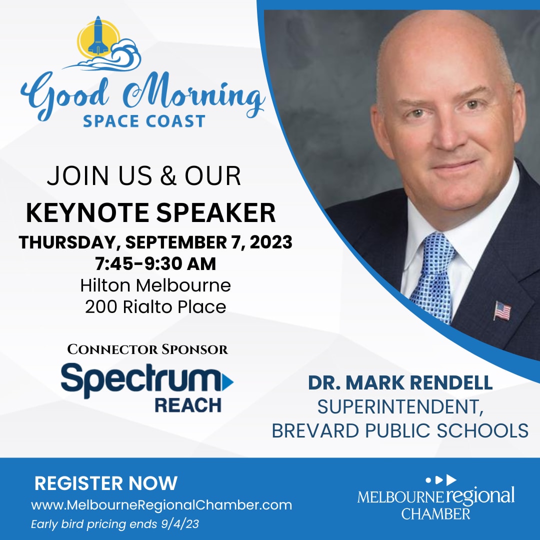 Superintendent Mark Rendell will give a brief update on the status of Brevard Public Schools. The 2023-2024 school year is under way and Mark will give an assessment of our progress so far and the work ahead. The school district is entering the final year of its 2019-2024 Strategic Plan. Mark will provide a summary of the 4 Goal Areas in the plan: Academic Excellence, Exceptional Workforce, Community Connection, and Operational Sustainability.