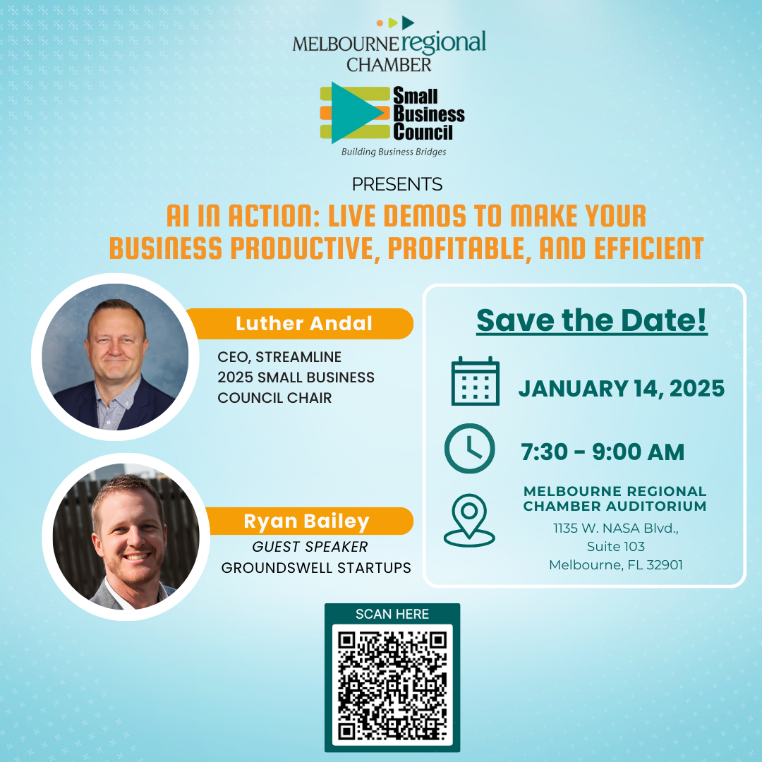 Join us for the first Small Business Council meeting of the year, featuring "AI in Action: Live Demos to Make Your Business Productive, Profitable, and Efficient!" This session will provide hands-on demonstrations of AI tools that are easy to use and will transform how you do business in 2025!