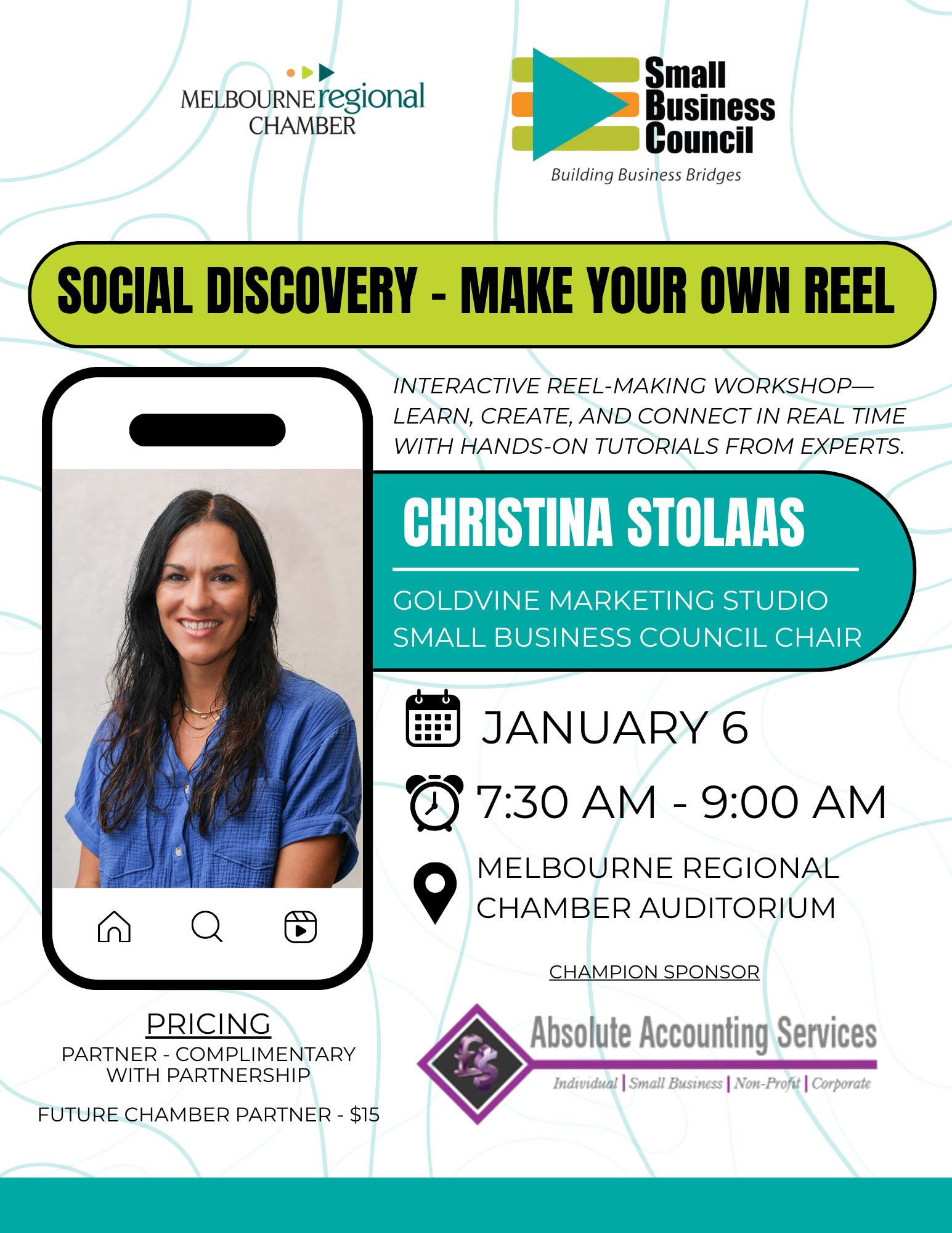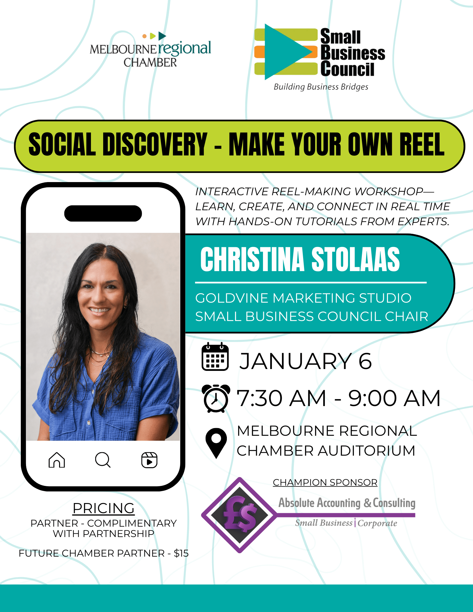 This hands-on workshop will teach you how to create engaging reels that showcase your personality, highlight your brand, and help you make meaningful connections. Whether you’re new to reels or looking to sharpen your skills, join us for a fun, interactive session where you’ll learn, create, and network—all in one event!