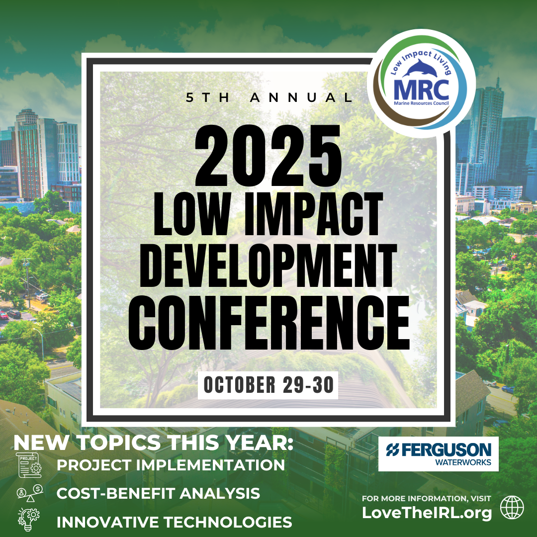 Marine Resources Council's 2025 Low Impact Development (LID) Conference covers a range of LID and Green Infrastructure tools from comprehensive land-use planning and manual creation to engineered design and construction of infiltration devices and bioretention areas. Experts share case studies that demonstrate cost-effective means to meet pollution load reductions, recharge groundwater aquifers, and prevent flooding. This year's conference also features an optional pre-conference field trip on the afternoon of October 28th.