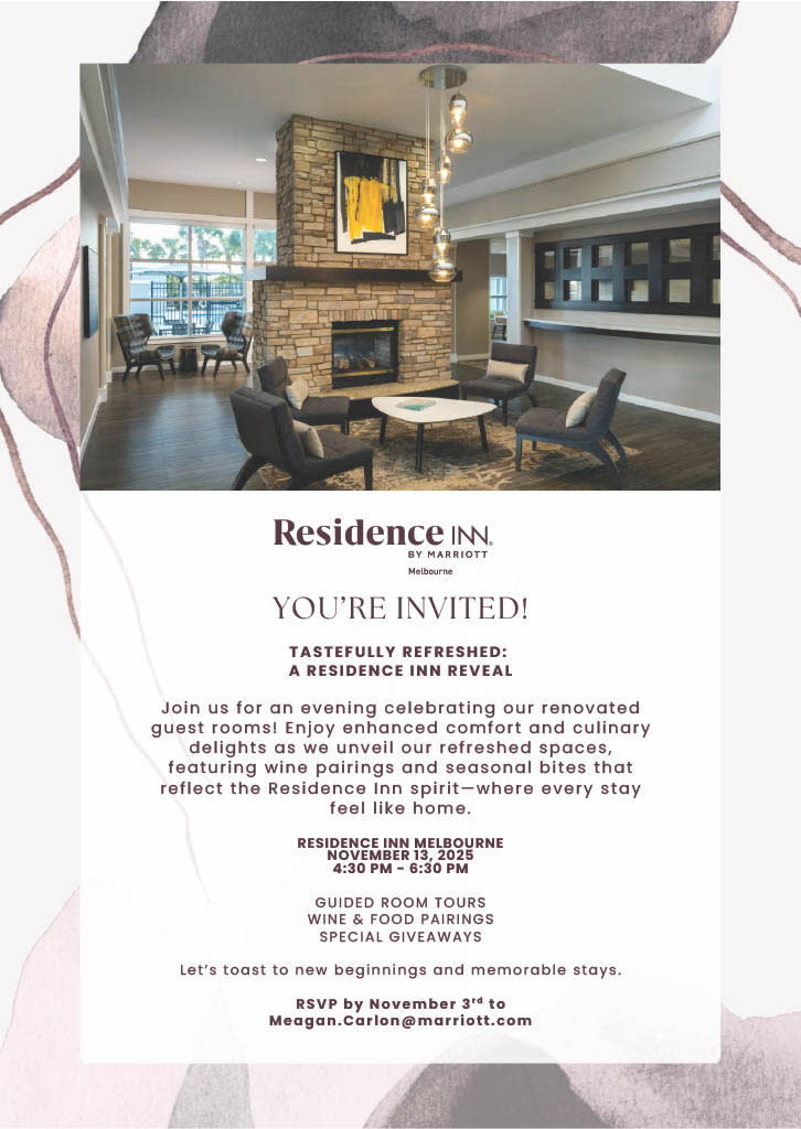 In celebration of our hotel renovation, please join us for a ribbon cutting ceremony as we reveal the newly renovated rooms at the Residence Inn Melbourne! We will be providing tours of the hotel with light bites available, as well as beer and wine. We hope to see you there!